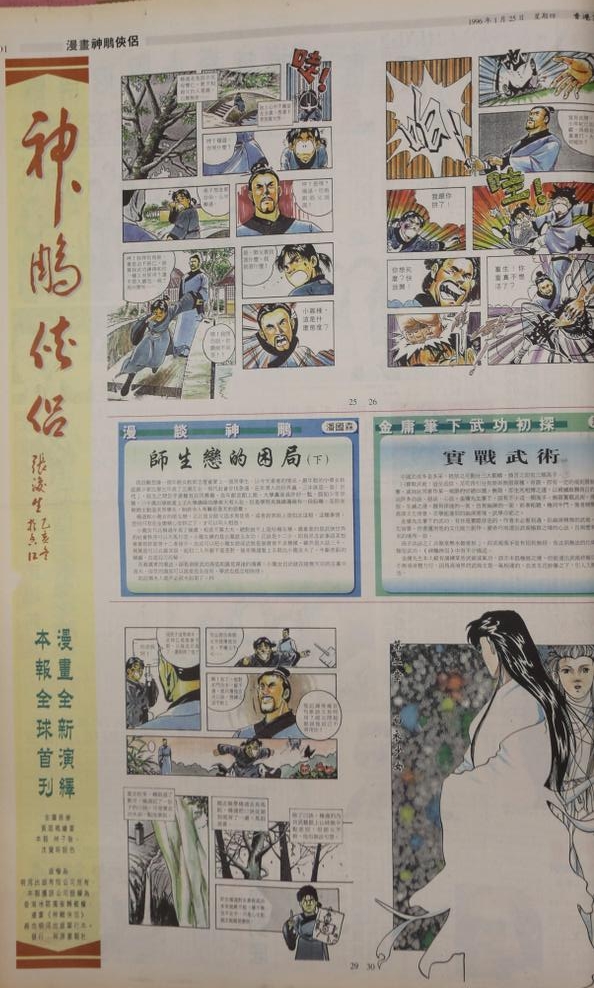 金庸的《神鵰俠侶》漫畫在《香港商報》作全球性首刊,於1996年1月21日曾在本報A1版刊全版廣告,預告連載消息。(張穎胤攝)