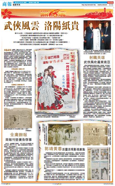 只因生不逢時,創刊初期《香港商報》銷量不多,佳作無人認識。及至金庸先后為《香港商報》寫下兩部新派武俠小說《碧血劍》和《射鵰英雄傳》,