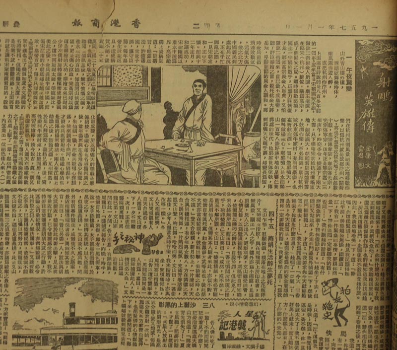60年前,《香港商報》每天報紙出來,人們首先是翻到副刊追看《射鵰英雄傳》的連載;市民街談巷議的話題,泰半與小說中的人物、情節有關。有與《香港商報》員工熟稔的金庸迷,更是走到報社的排字房,到了緊張情節,竟然連油墨掃樣也等不及,不顧字是倒排的,也要先睹為快。