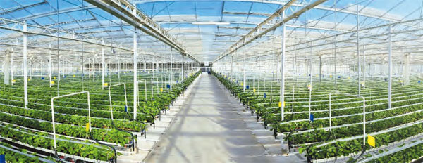 海升利用智能玻璃溫室種植草莓和串收番茄