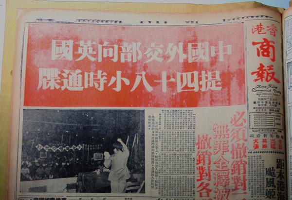 《香港商報》當年以頭版報道中國外交部西歐司負責人嚴斥英殖民當局暴力鎮壓勞資糾紛。