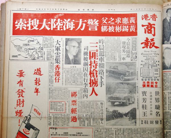 1961年2月11日,《香港商報》頭版圖文并茂詳盡報道富商黃錫彬被綁架的新聞。