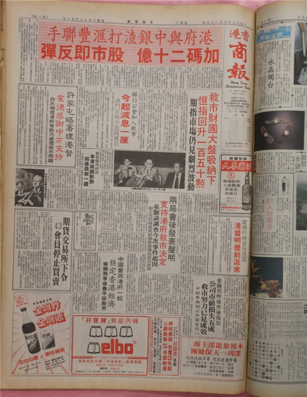 1987年10月26日,港股经停市4天后,复市即暴泻逾千一点,《香港商报》即走访财政司及学者专家作深入报道分析大跌市原因及应对方案。