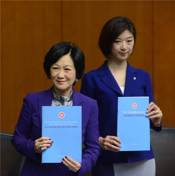 葉劉淑儀(中)認為香港應把握粵港澳大灣區的機遇。