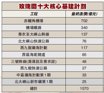 謝國樑印象最深刻的還有包括「新機場計劃」在內的1989年的「玫瑰園」十大核心基建計劃。他形容,該計劃的影響「無與倫比」。當時港英政府對該計劃給出的預算超過2000億元,對香港經濟起到了很大支持作用,過渡時期的經濟不但沒有崩潰,還令樓市和股市蓬勃上升。基建工程的發展,為香港作為全球服務中心起到了關鍵的支持作用,建設香港新機場,對香港物流和航空業發展產生相當的推動力。另外,該計劃中的隧道橋樑建設,則帶動了新界西北、元朗、屯門等地區的發展。值得一提的還有中區填海計劃,作為工程的一部分,中環的國際金融中心功能得到了強化。謝國樑指出,十大核心工程的作用和影響延續至今,對提升香港的國際地位,起到了關鍵作用。