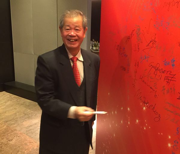 香港商报前社长吴松营先生抵达酒会现场并簽名