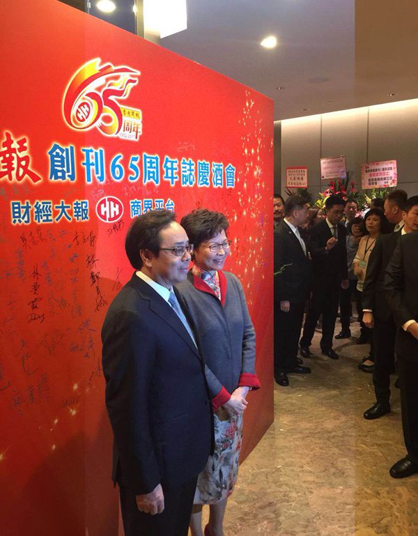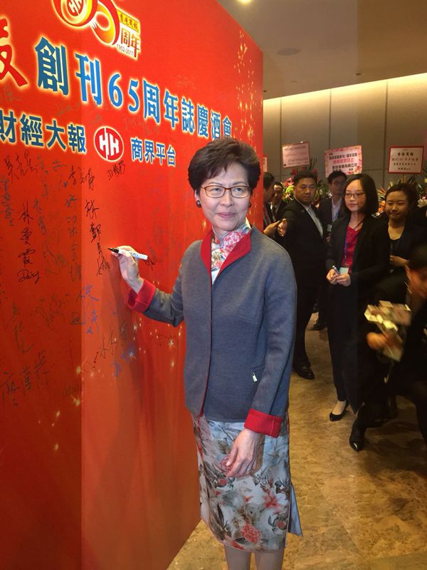 林鄭指出,《香港商報》一直以香港為家,六十五年來,《香港商報》為香港人服務,秉持「為商界代言,為商家服務」的宗旨,重點刊登各類與香港經濟形勢緊密相關的新聞、分析香港商人關心的熱點問題,以及報道鄰近地區的重要政策和經濟信息等。多年來,《香港商報》為讀者提供了無數的經貿信息,促成了大大小小的交易和投資項目,間接推動香港的經濟發展,可謂貢獻良多。