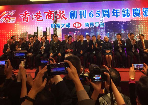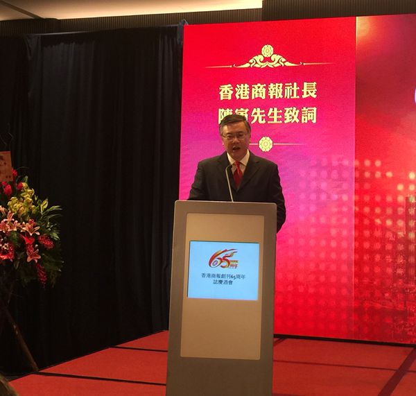 香港商報社長陈寅首先在庆祝酒会上致欢迎词。陈寅说,回首65个春秋,香港商报传承"一切为香港人着想、一切为工商界服务"的初创宗旨,确立了"财经大报、商界平台"的办报追求,坚持深耕本港、沟通两地、服务商界、环球视野,在内地开设了27个办事处,并将触角伸向全球,先后推出美国版、印尼版,筹办澳洲版、欧洲版,编织全球财经信息网络,跻身华文新闻传媒平台前列。