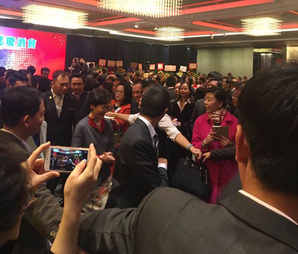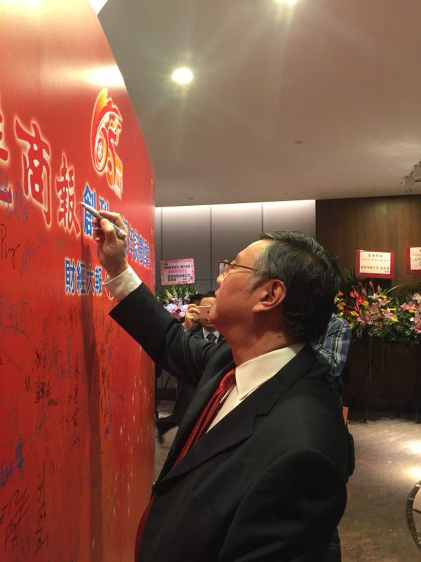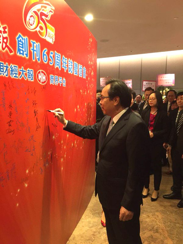 下午2:00整,出席香港商报誌慶酒会的嘉宾纷纷在签字板上签名并合影留念,多位嘉賓稱讚香港商報堅持愛國愛港,報道翔實全面,并祝福商報未來的發展一片光明。