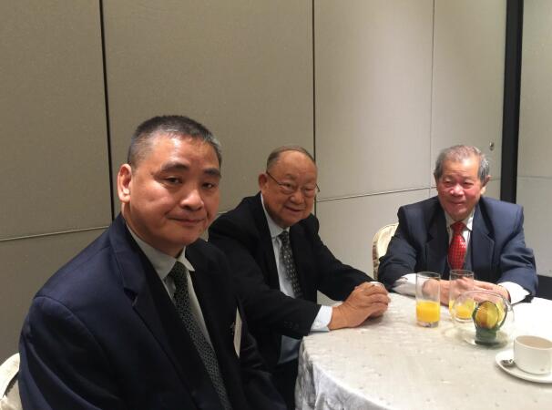 香港商报总经理张介岭(左)陪同香港商报前社长、名誉董事长李祖泽(中)和前社长吴松营(右)