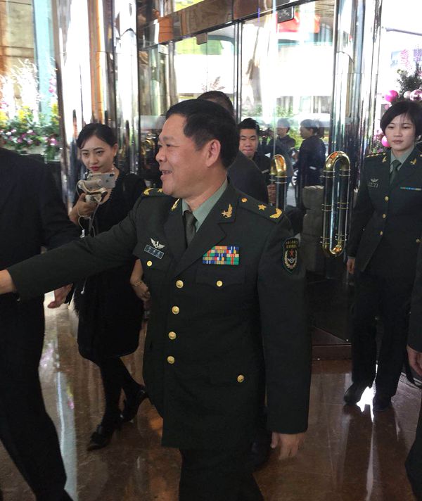 解放军驻港部队参谋长何启茂抵達酒會現場