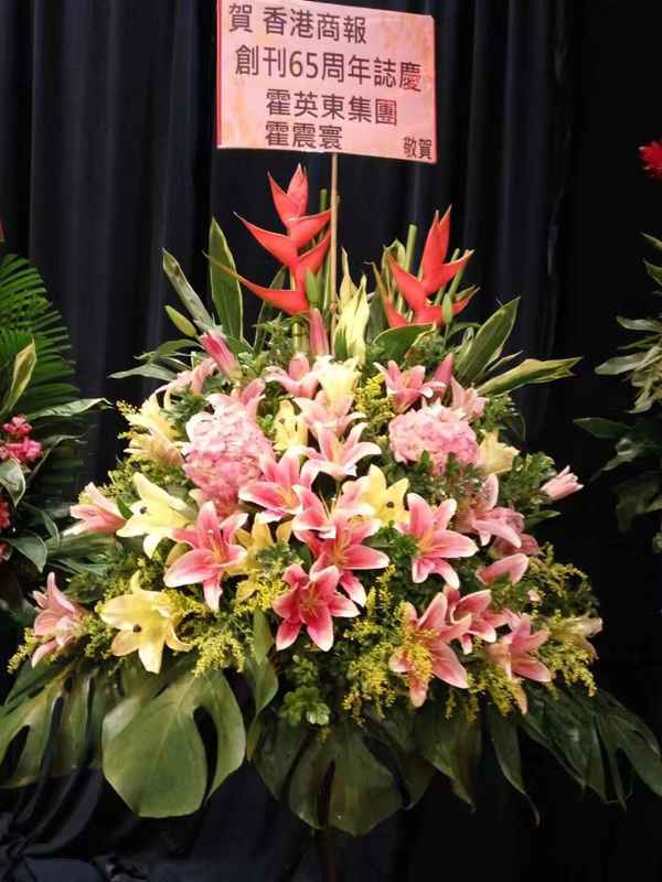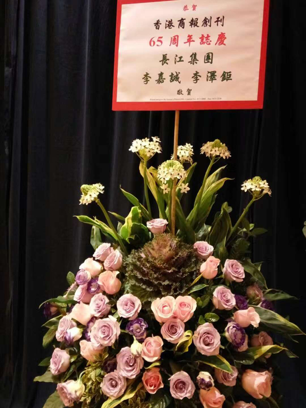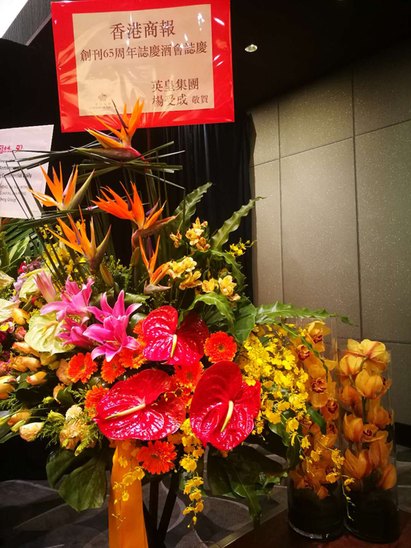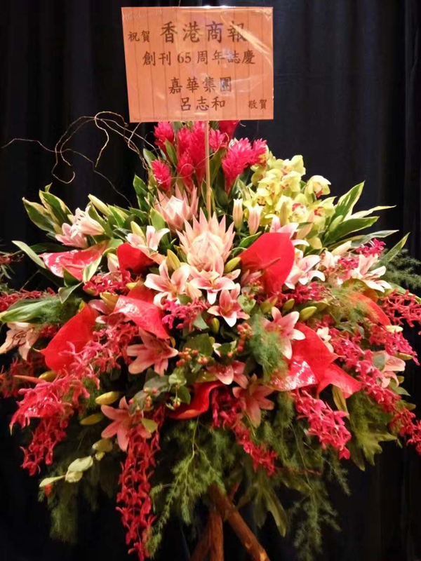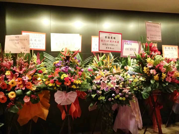 酒会现场,嘉宾赠送的花篮,营造出热烈而又喜庆的气氛