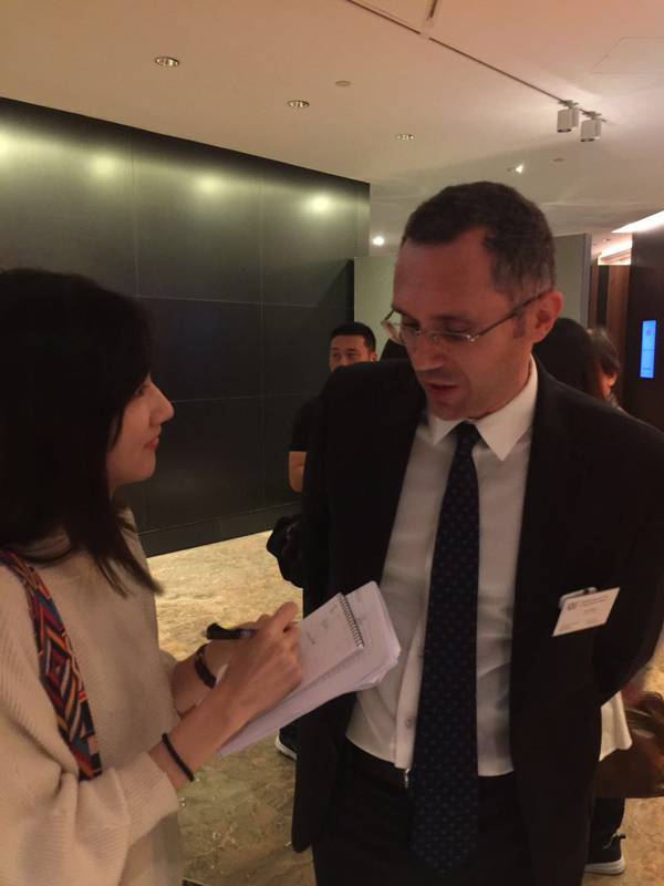 德國駐香港總領事館副领事(右)与本报记者交谈