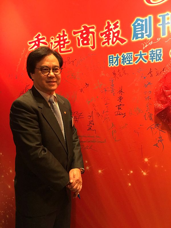 香港潮州商會永遠榮譽會長張成雄讚揚本報報道真實,不譁眾取寵,65週年的大喜日子值得慶祝,祝願商報越辦越好!