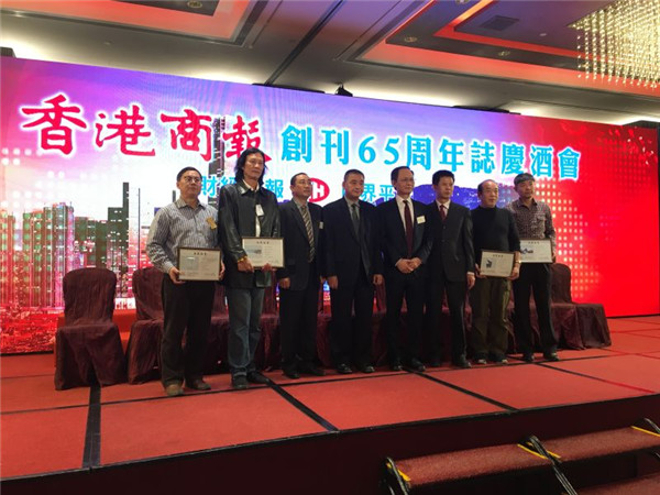 報慶酒會上,報社領導還為來自內地的數名書畫藝術大師頒發了“香港商報65年慶作品收藏证書”。