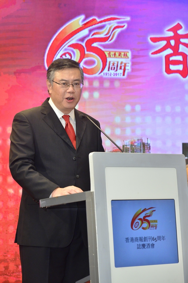 今天我很高興出席香港商報六十五周年報慶酒會,和大家一起分享商報創辦六十五周年的喜悅。