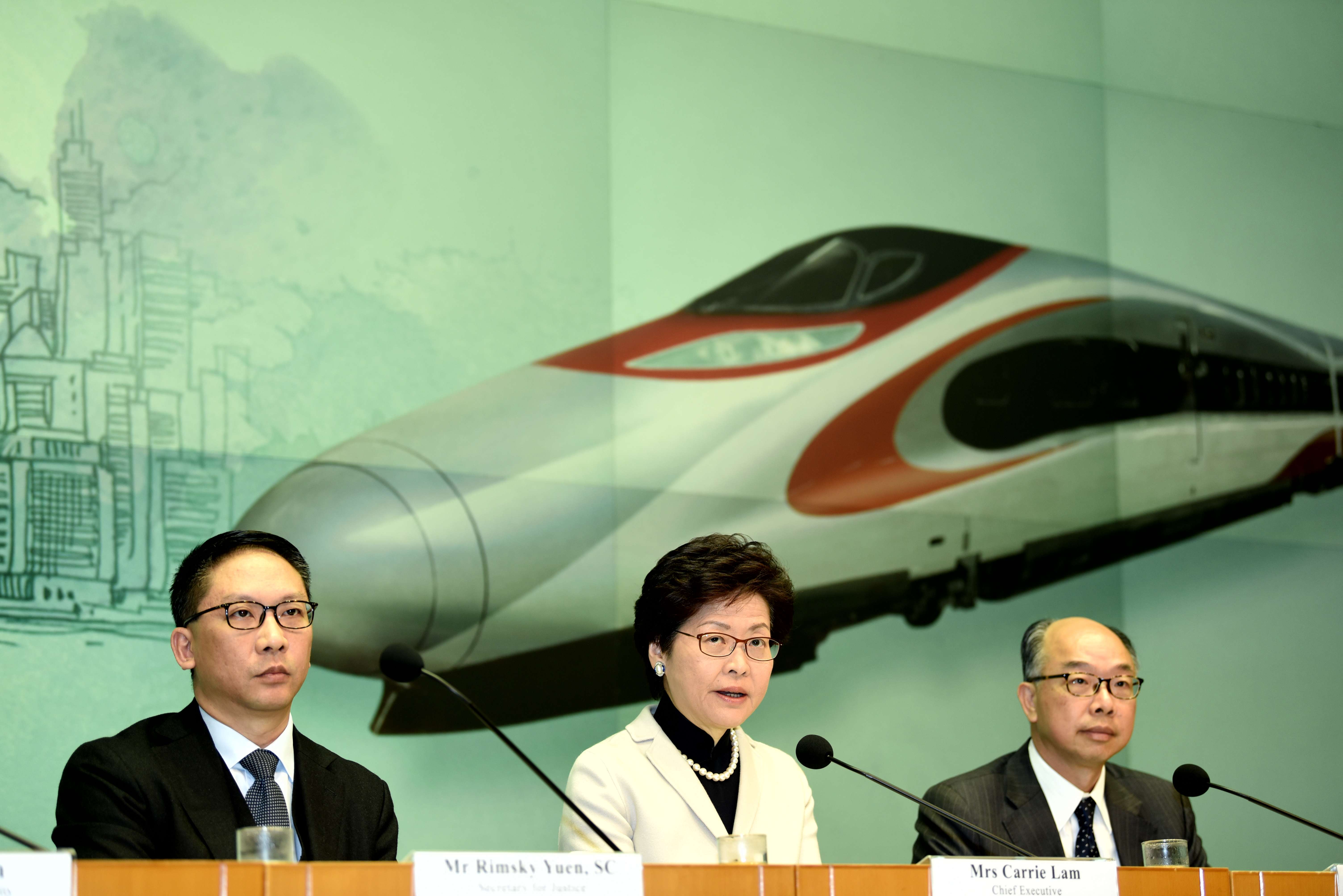 特區政府繼27日舉行記者會(上圖)歡迎全國人大常委會批准「一地兩檢」合作安排后,昨日又發表聲明指出,「一地兩檢」《決定》完全依據國家憲法及相關程序,完全符合國家憲制程序,具有法律效力。