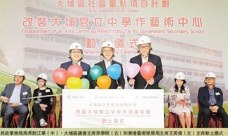 2013年的《施政報告》宣布,為強化地方行政,政府推出社區重點項目計劃,為每區預留1億元的一次性撥款,以支援區議會推行社區重點項目。大埔社區重點項目計劃則是改裝前大埔官立中學成為大埔藝術中心,上月30日此項目終舉行動土儀式,工程預計於2018年年底完工。