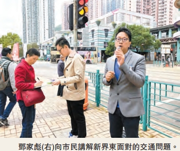 他不諱言,新界東居民對於當區交通的感受愈來愈差:「北區、大埔、將軍澳等區的居民感受甚深;即使沒有特大意外、天氣惡劣,但是(新界東的)行車時間都長了,交通意外次數多了,車龍完全不動的情況也多了。」