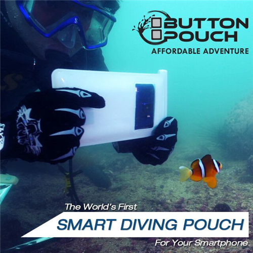 而黃議德公司的新產品ButtonPouch則是世上第一個智能防水袋。黃議德稱:「香港人很喜歡戶外運動,而目前手機在水底下是沒辦法在屏幕上進行操作,所以就只能購買昂貴的運動相機來拍照攝影,我們利用了AirButton技術,令大家在水底下也能使用手機,輕鬆把大魚細魚收進照片和影像裏,而價格也只是運動相機的十分之一,不需再花數千元買一部GoPro或者相機加防水殼,省下的錢足夠去多次旅行。而且利用手機除了可以直接將影完的相傳送給朋友或上傳到Facebook、Instagram,手機大屏幕的特性亦方便對焦取景。同時APP會自動修圖,還原真實色彩,對於手機不離手而又不常去浮潛、潛水或海邊玩,但又想拍照留念的現代人來說,是最合適不過的產品。」