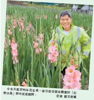 距農曆年兩個多星期,梁日信花田的花仍是含苞待放,不過有極少量的劍蘭已開花,這些劍蘭只好留待觀賞。梁說,劍蘭栽種要115至85日,因此在農曆九月十五日開始就要分批種植,才有機會做到應節時花,他共栽種了20萬棵劍蘭,料三成即約6萬棵可合時推出。而百合種植時間120至85日,在農曆九月初之前分批種植,種了10萬棵,當中約3萬棵可在農曆新年間推出。
