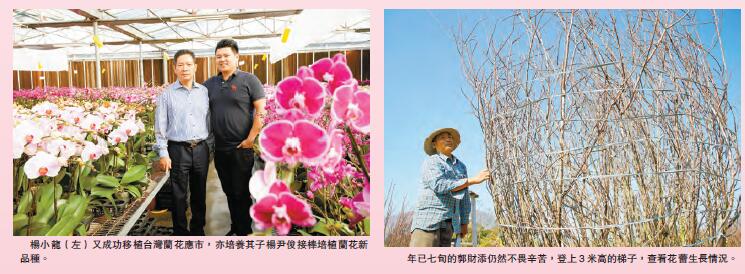 有蘭花大王之稱的錦上路「千葉園」園主楊小龍,戊戌狗年推出「花蝶迎犬—蘭花系列」萬餘枝,更有「恩桃」、「女神」等多個新品種。其中「恩桃」是其子楊尹俊所栽種。楊尹俊在英國讀完書后,返港隨父親種植蘭花,他后生可畏,青出於藍,經過長年累月精心培植,終成功種出「恩桃」蘭花新品種。