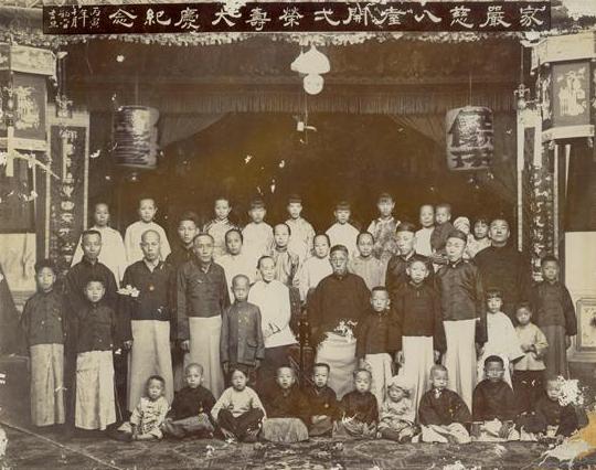 饶氏家族与20年代拍摄的大合照,饶宗颐位于前排站立左五。