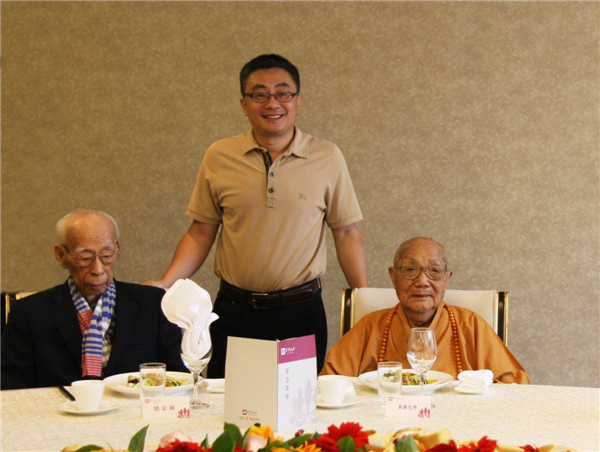在这么多次的陪伴同行中,令吴秋文最为印象深刻的一幕是2011年6月,在他的穿针引线下,一代佛学宗师、105岁的本焕长老和一代国学宗师、当年96岁的饶宗颐在刚落成不久的深圳紫荆山庄首次会面。两人讲佛说经,纵论国学,一见如故。
