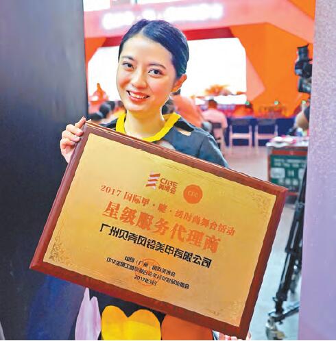 鄒圳麗获广州美博会颁发“星级服务代理商”牌匾。