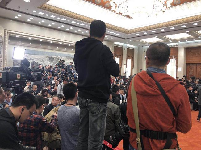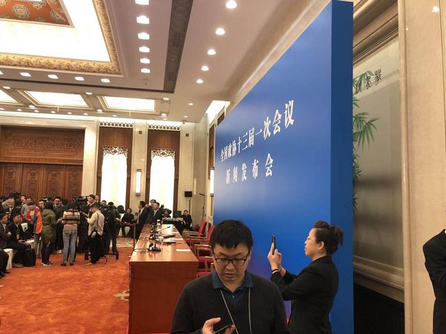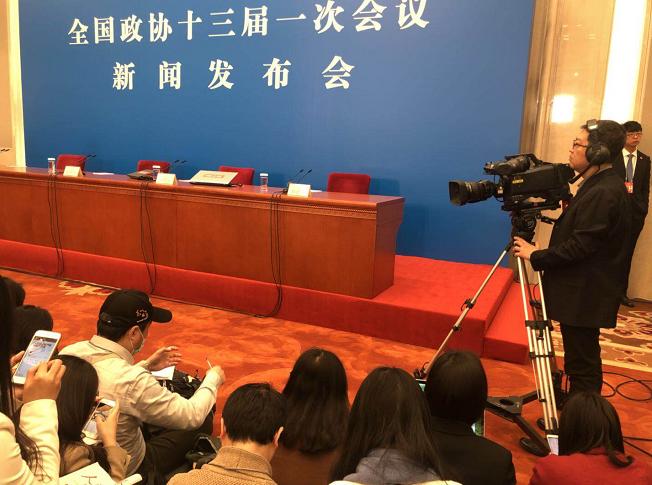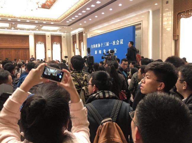 政协会议发布会现场记者爆棚