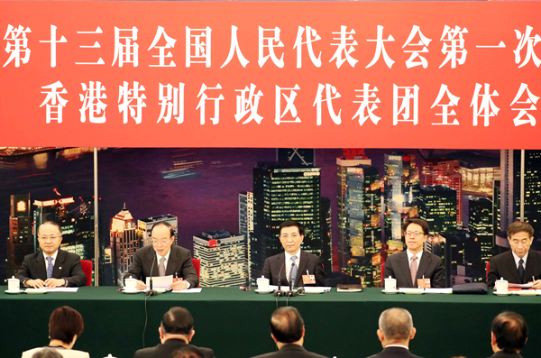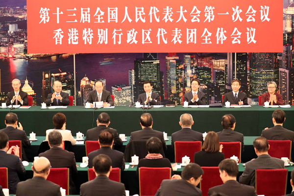 香港代表團團長馬逢國主持會議。他對政府工作報告描繪的美好前景充滿信心、感到振奮,衷心感謝中央對香港的關懷和眷顧,為貫徹「一國兩制」、落實基本法保駕護航,又感謝港澳辦和中聯辦等,為維護香港繁榮穩定所做的大量深入、細緻的工作,是「一國兩制」方針不會變、不動搖,「一國兩制」實踐不走樣、不變形的重要基礎。會后,他又引述王滬寧強調,要「依憲治港」、「依法治港」,強調憲法是國家對香港行使全面管治權,與基本法保障高度自治權要「有機結合」,「兩者一起去看,才能保證香港『一國兩制』行穩致遠」。