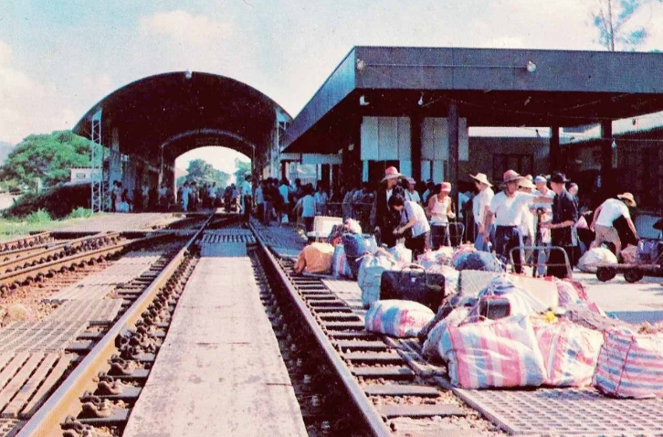 上世纪80年代,香港罗湖火车站上的回乡旅客和行李。
