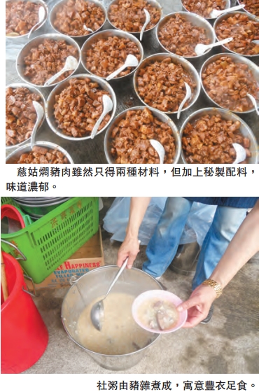 未煮慈姑燜豬肉前,先來個社粥(豬雜粥)給工作人員及早來的村民享用,寓意豐衣足食。