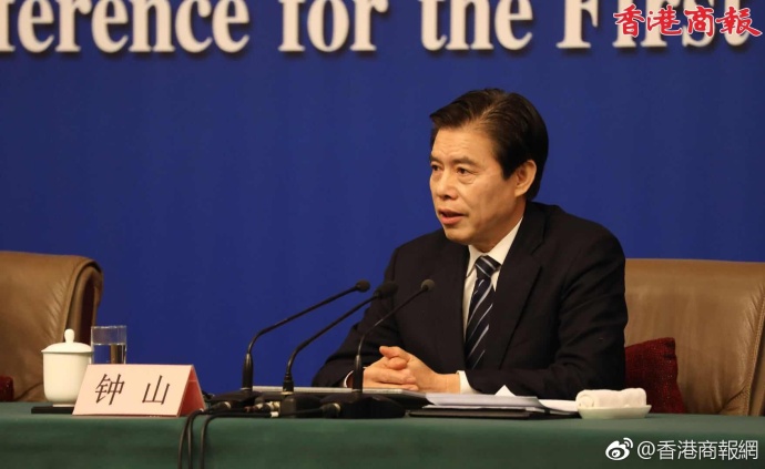商务部部长钟山回答记者提问。新华网/中国政府网 陈杰 摄
