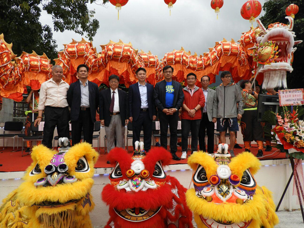 雷公田村代表張日華(左三)率村領與參加新春聯歡的主禮嘉賓合影留念。 村公所提供圖片