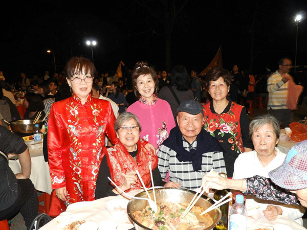 聯歡當日,官兵以歌唱、樂器演奏方式表達對長者的關懷,而舉辦方筵開70餘席敬老盆菜宴,數百名村民、嘉賓與長者共享傳統美食,而出席主禮嘉賓有駐港部隊石崗步兵旅陳偉霖副政委、立法會議員何君堯、八鄉鄉委會主席鄧瑞民、元朗區議會議員文光明、九龍東區議員歐陽均諾及新田鄉委會副主席文中慶。