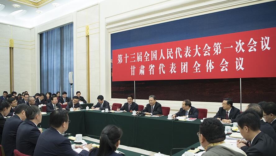 赵乐际在甘肃代表团参加审议。听取林铎、唐仁健、尚伦生等代表发言后,赵乐际表示,完全赞成全国人大常委会工作报告。他说,站在新的发展起点上,希望甘肃深入贯彻落实习近平新时代中国特色社会主义思想,贯彻落实习近平总书记视察甘肃重要讲话精神,紧紧围绕统筹推进“五位一体”总体布局和协调推进“四个全面”战略布局,结合实际创造性落实新发展理念,打赢脱贫攻坚战,抓好生态保护和建设,稳中求进、改革创新、狠抓落实,着力推动高质量发展,加快建设幸福美好新甘肃。纪检监察机关要以宪法修正案赋予监察委员会宪法地位为契机,深化国家监察体制改革,认真履行监督执纪问责和监督调查处置职责,推动制度优势转化为治理效能,为经济社会持续健康发展提供有力保障。