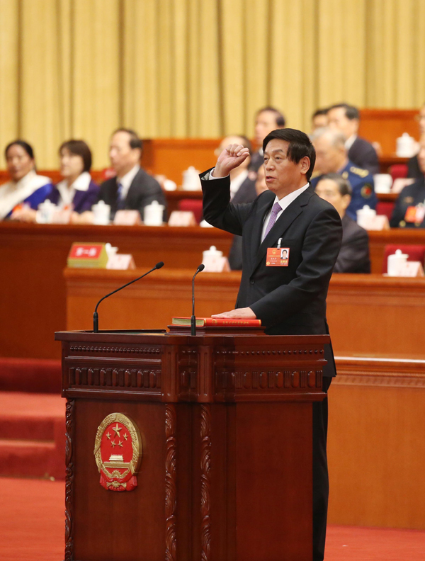 王岐山當選為中華人民共和國副主席。這是王岐山進行宪法宣誓。新華社