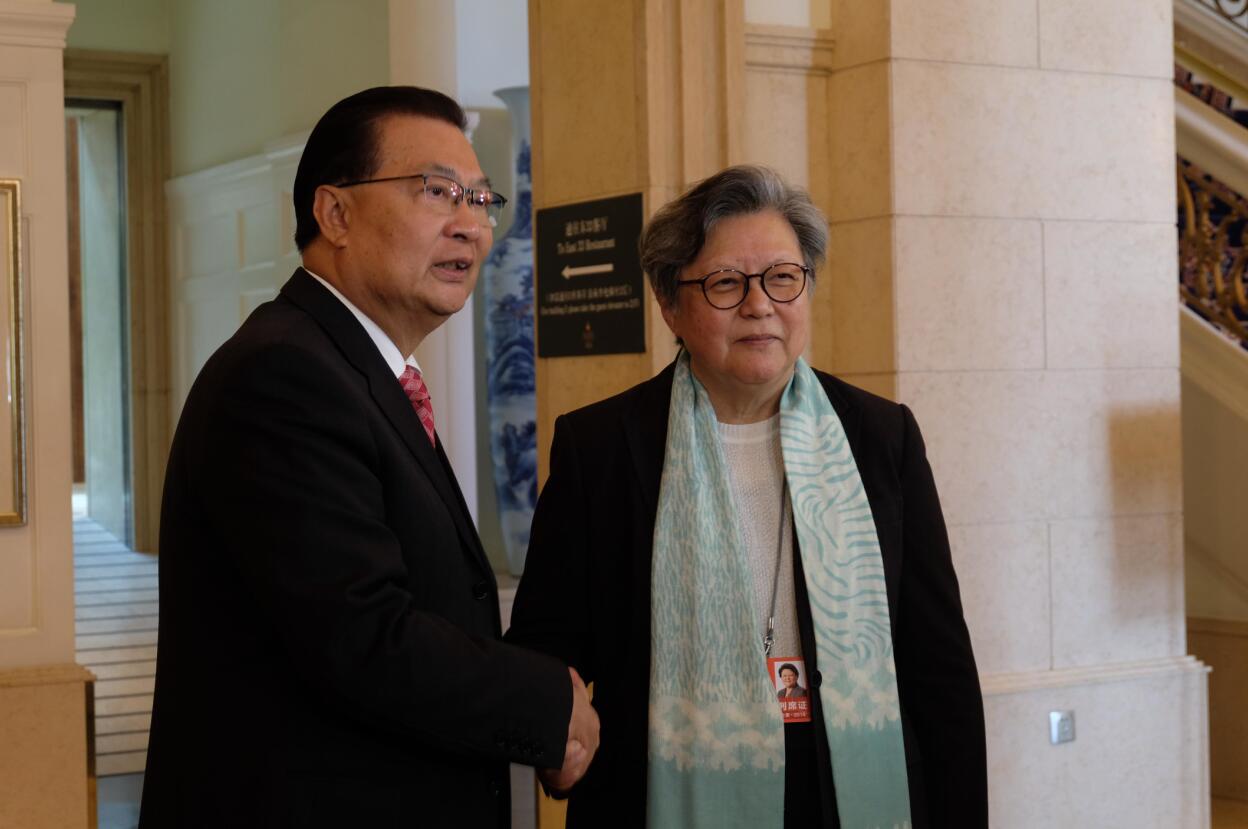 譚耀宗當選第十三屆全國人民代表大會常務委員會委員,十二届全国人大常委范徐丽泰表示祝贺。