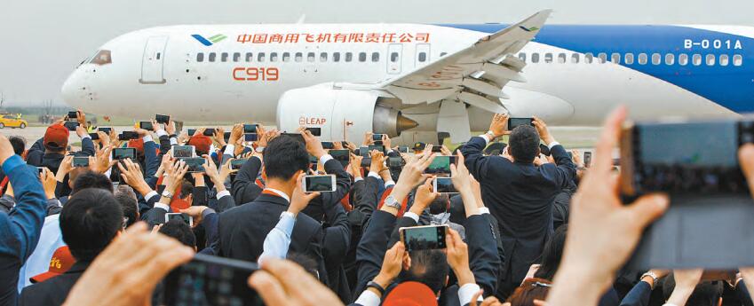 中國商用飛機有限責任公司成立於2008年,今年邁入第十個年頭,其研制的國產大飛機C919,是中國首款完全按照國際先進適航標準和主流市場標準自主研發的單通道干線飛機,於2017年5月5日在上海首飛,目前國際國內用戶達28家,獲815架訂單。