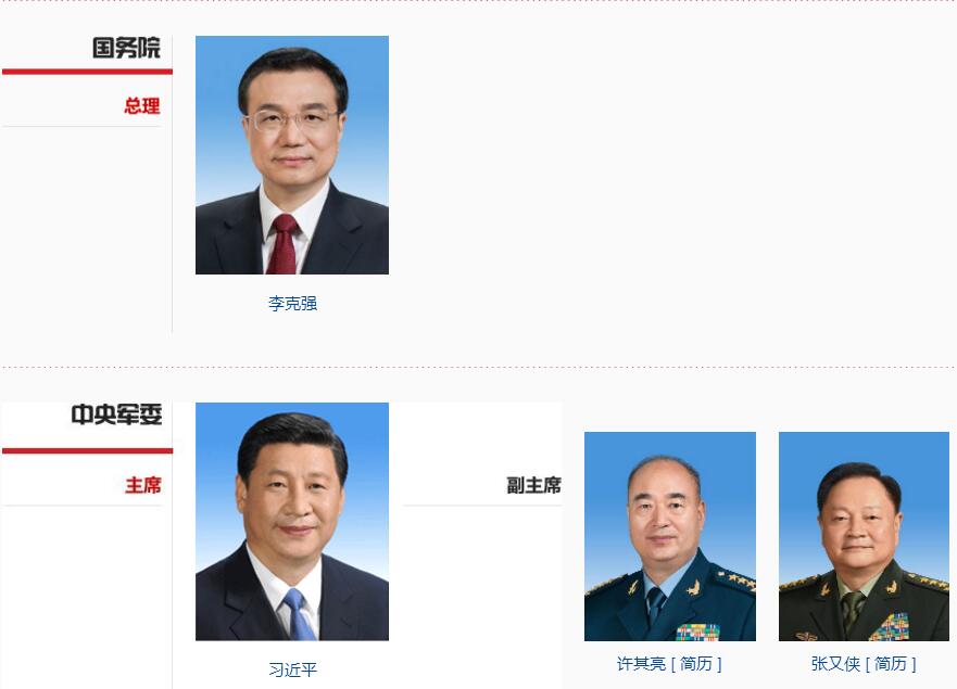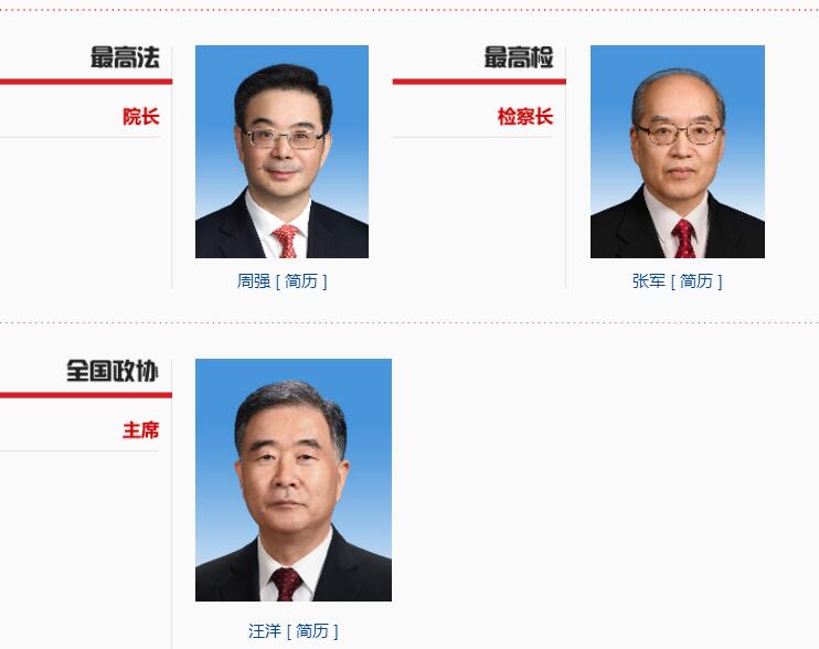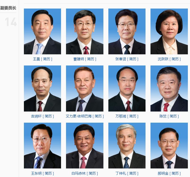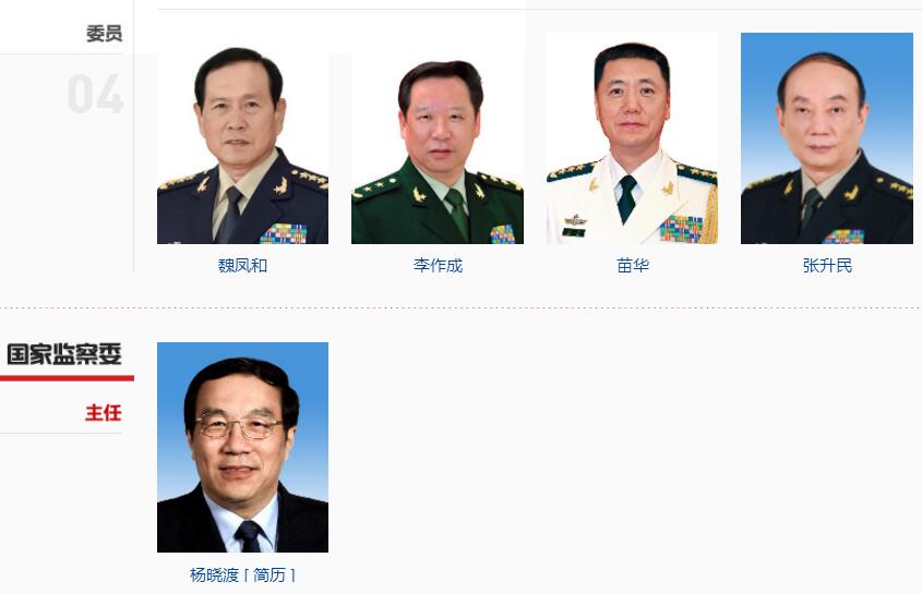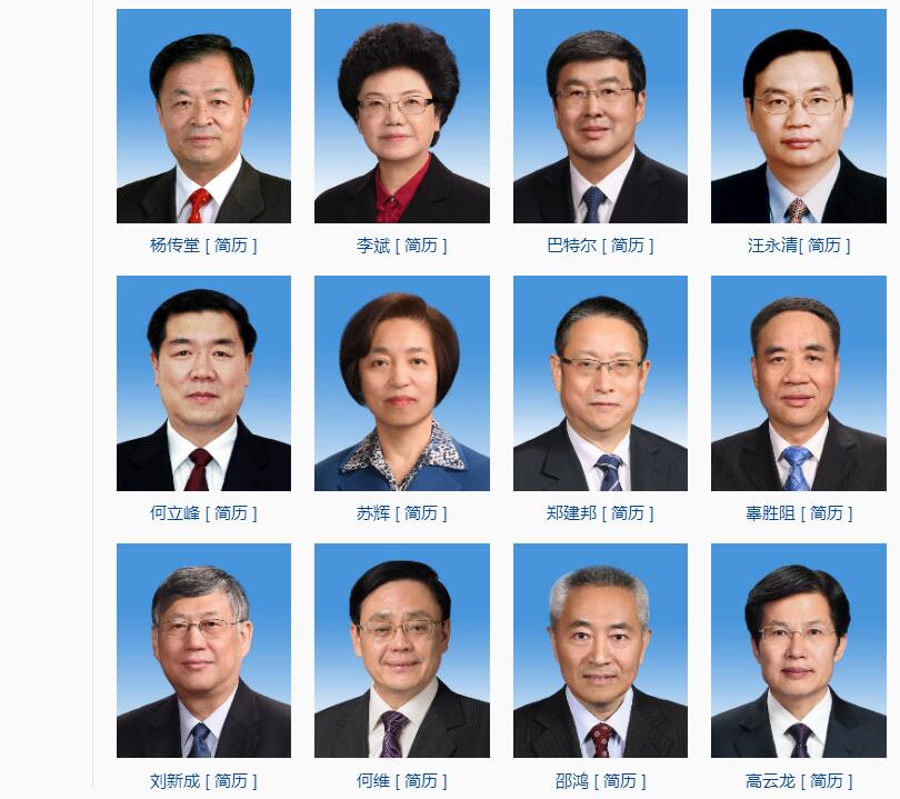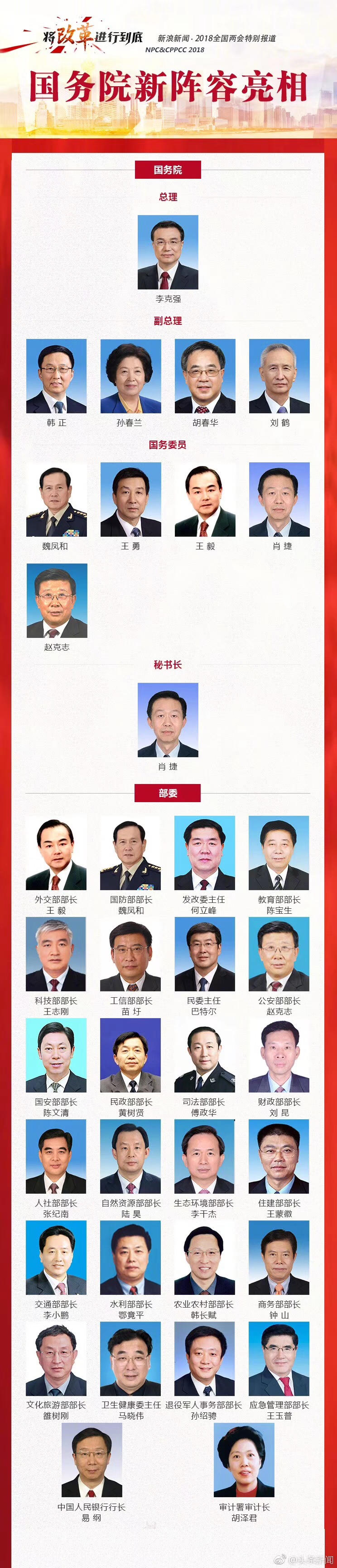 魏凤和、王勇、王毅、肖捷、赵克志为国务委员。