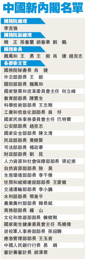 主持人還宣布了國務院秘書長和國務院各部部長、各委員會主任、中國人民銀行行長、審計長名單(詳見圖表)。