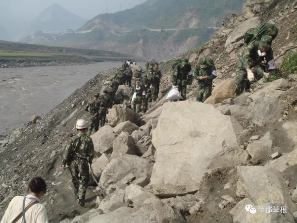 (他们从这里逆行而上。身边都是一些从震中逃出的百姓。这些在艰难困苦与万千危险前总是逆行而上的人们,写下了人民军队的无尚荣光)