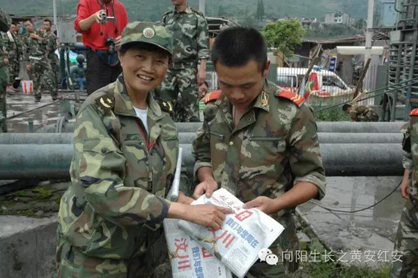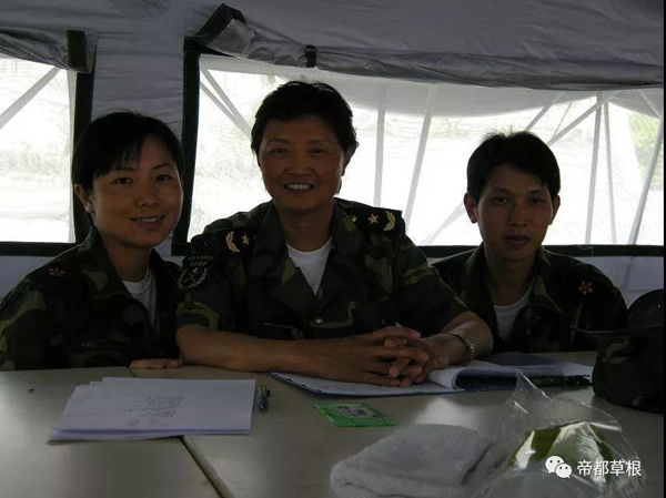 (左一是抗震救灾总指挥陈晓红少将,也是前线唯一的女将军。她对每个队员的关怀无微不至,在抗震回来后不久光荣退休)