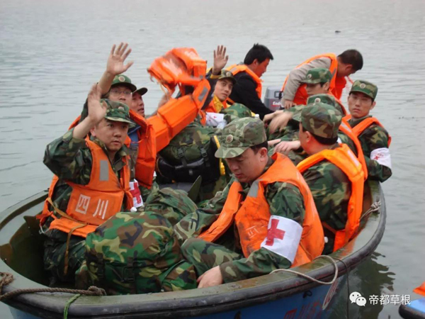 (他们从这里渡江而上的,陆路全被封死,余震不断,每个出发的人,都给队伍表态,生死置之度外。没有写遗书,即使考虑到了,却没有时间。)