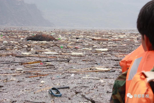 我们最早是从水路出发的。由于山体滑坡,道路中断,到达紫坪铺大坝时,只得乘冲锋舟进发。坐上冲锋舟后,我们看到,江面上四处漂浮着死去的牲畜腐烂的尸体,散发出阵阵臭味。滚滚的激流,随时有打翻冲锋舟的危险。特别是不远处的山上,还有飞石滚落,砸在江中特别恐怖。作为队长,一种身临其境的危险压在我的心头,但我看到,队员们没有一个害怕与退缩。我们便在艰难的水路中历时1小时40分钟,终于到达漩口码头,开始步行。