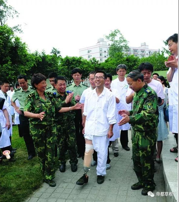 (这位叫李科的年轻人,被发现时压在石头下,救治的医生因为空间狭小,曾拉断了两根锯条。他害怕余震造成倒塌,自己要了一根锯条,锯断了自己的腿爬了出来。后来,唐佩福主任和他的团队亲自为他手术,让他成为灾区站起来的第一人,从而大大增强了患者们的信心。)