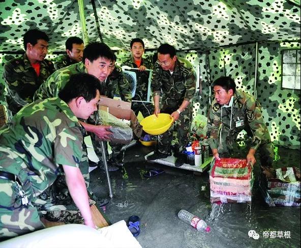 在救人的过程中,我们还经受住了野战生存的严峻考验。17日中午,我发现带来的压缩饼干和矿泉水都所剩无几了,因为队员们把大部分给养都送给可怜的灾民和勇敢的铁军战士了。面对困难,我们没有坐以待毙和怨天尤人。队员们用街边捡来的压缩饼干桶去接山水烧开后喝,第三天在连续工作50多个小时后,看到队员们一天没吃东西,我情急之下便让两名队员挖了一些只有手指头大小的小土豆,用压缩饼干桶煮着吃,尽管没有盐,没有任何滋味,但大家却狼吞虎咽,吃得津津有味。就这样,我们靠喝山水吃土豆,渡过了难忘的三天三夜。开始,我们始终露宿街边,直到直升飞机投放一批帐篷后,才和三医大一共13人挤进原本只容8人的帐篷里,不得不蜷缩着身子入睡。由于过度疲劳,大家很快就进入了梦乡。夜里三点多突然下起暴雨,雨水混着泥沙冲进帐篷。我被雷声惊醒,发现被褥全被水渗透了,看到队员们全躺着在水里还浑然不知时,便急忙唤醒大家。队员们醒来只好坐在行囊上,背靠着背在瞌睡中度过了这难忘的一夜。大家表示,“国难当头,再大的困难与受灾群众相比,也不叫困难,只要一息尚存,我们决不会抛弃一个同胞,更不会轻易选择放弃一个生命。”