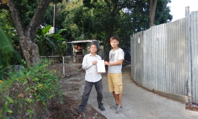 永寧村村民林義庭(左)指,該村连同楊屋村及鳳池村的90%住戶,即使獲全額補償亦只能获得42萬元,故此,仍坚持原置重建村。