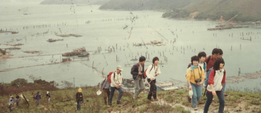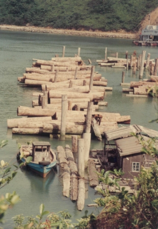 1984年山塘尾光禿山坡,左上角是鹿頸村碼頭。